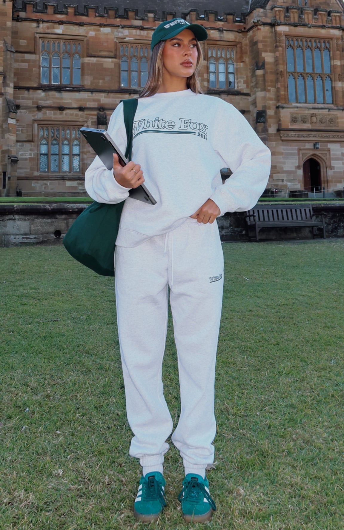 Step into the new term with the No Hesitation Sweatpants in Grey Marle! Featuring a thick. elasticated waistband with drawstring closure. full length. two side pockets. cuffed ankle design. soft fleece lining. and side front White Fox logo detailing. Team with the matching No Hesitation Oversized Sweater Grey Marle for a matching moment we adore!